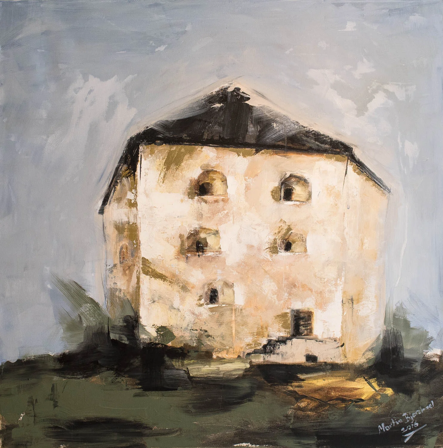 ”Kristiansten festning”. 80x80cm, acrylic on canvas.